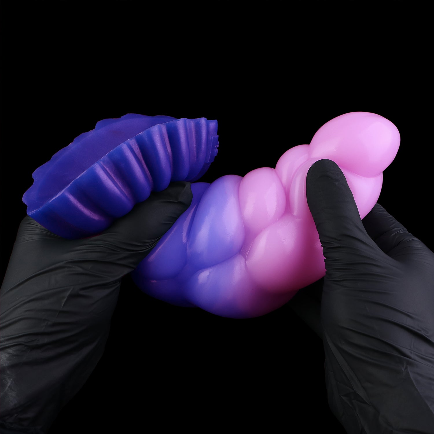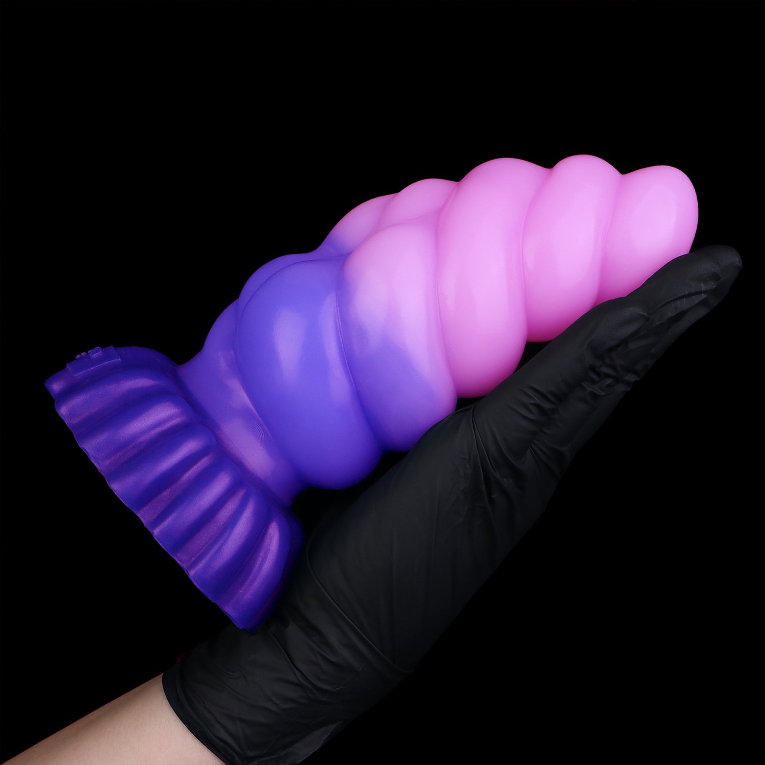 Larval’s base is wide and supportive, paired with a suction-cup underside that locks it in place for hands-free play. The shaft arcs gently, mimicking nature’s curves, and lined with ribs for deep waves of stimulation. Every edge, every groove is crafted to balance pleasure and ergonomic flow.